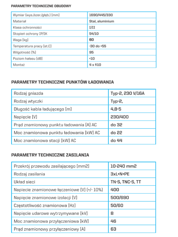 – Zaciski przyłączeniowe stacji od 10 do 240 mm2.